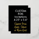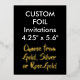 Invitaciones a Relieve metalizado personalizado - RELIEVE METALIZADO DORADO REAL en FONDO NEGRO - RETRATO de 4,25" x 5,6" [tamaño postal USPS calificado]. Invitaciones de Relieve metalizado reales de primera calidad con un acabado de textura elevada, impreso en un papel blanco de primera calidad con acabado satinado, hecho de papel certificado FSC reciclado, fabricado en Italia. OPCIONES DE RELIEVE METALIZADO REAL: Elija entre la impresión de Relieve metalizado real Gold, Silver o Rosa Gold. OPCIÓN ENVELOPE: sobres blancos disponibles por un recargo. OPCIONES DE ORIENTACIÓN: 4,25" x 5,6" (retrato) o 5,6" x 4,25" (paisaje) invitaciones. SU DISEÑO PUEDE INCLUIR COLORES REALES DE RELIEVE METALIZADO Y ESTÁNDAR: FRENTE A LA INVITACIÓN: Texto, imagen y diseño en la parte delantera de la tarjeta permite imprimir tanto en Relieve metalizado real como en color estándar. BACK OF INVITATION: Sólo colores estándar (sin opción de impresión de Relieve metalizado).
