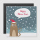 Feliz año nuevo lindo gato en un paisaje nevado, vacaciones de invierno animal personalizado, bosque nevado santa kitty mascota.
