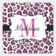 Diseño de impresión de leopardo pegatinas personalizados en morado, negro y blanco con una franja negra, borde blanco con banner negro que se puede personalizar con un nombre y un primer monograma!