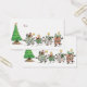 Ilustracion de la Vintage divertido, tonto, humorístico diseño de vacaciones de Navidades personalizados con un árbol de Navidad con una cara sonriente y una brillante estrella dorada bailando con regalos que también tienen caras graciosas.