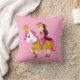 Almohada con un ilustracion de una princesa feliz vestida con un vestido rosado en un pony, un regalo agradable para las niñas y una gran decoración para una guardería o habitación de chica