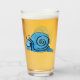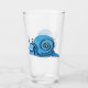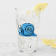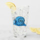 Este vaso para bebidas tiene un lindo caracol personalizado que tiene una gran sonrisa en su cara y la concha es un patrón de azul acuático claro y oscuro en la parte delantera y trasera.