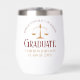 Este regalo de vaso de vino para graduación de la escuela de derecho de personalizados de oro y marrones presenta tipografía moderna para una clase de graduados de 2024. Personalizar con tu año de graduación bajo la escala de la justicia por un gran abogado personalizado que se ocupa de un abogado graduado.