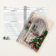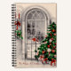 ¿Tienes recetas de vacaciones? ¿Receta de galletas de Navidades de familia secreta? Prueba este cuaderno de recetas para Navidades. Cuenta con un dibujo a lápiz de una ventana de estilo antiguo con una escena de nieve de invierno afuera. El interior de la ventana está decorado con un colorido árbol de Navidad verde y rojo y una pared de velas.