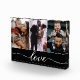 Personalice este bloque de fotos con 3 fotos. Elige fotos favoritas de la familia, los niños, padres, esposa, esposo, fotos de bodas, mascotas (perros, gatos, peces, etc.). Barra negra en la parte inferior con un estilo moderno de escritura "Love".