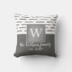 diseño de diseño moderno con rayas blancas y grises de almohada personalizado monograma con texto para personalizar para una decoración única en el hogar o un regalo boda.