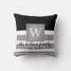 sepia de almohada monogramo personalizado y rayas blancas de estilo afligido con texto marrón oscuro para personalizar para una decoración única en el hogar.