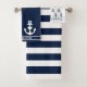 Presentamos el juego de toallas de baño de rayas blancas de la marina Personalizado Nautical Heart Anchor. Este conjunto es perfecto para los amantes de la playa o de la decoración de temática náutica. El conjunto incluye una toalla de baño, una toalla de mano y una tela de lavabo, todo con un diseño personalizado de ancla náutica azul marino y rayas blancas que las hacen perfectas para la playa, la piscina o incluso el cuarto de baño diario.