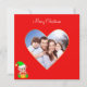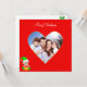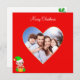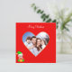Corazón familiar personalizado moderno y lindo elfo verde con tarjeta de felicitación de Navidades rojos. Texto listo para ser personalizado. La foto se puede personalizar,