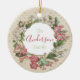 Personalice este adorno navideño para celebrar esta fiesta juntos, quedándose en casa. También mande otro a un miembro de la familia que no pudo llegar a casa pero que todavía puede tener el mismo adorno familiar para sentir que están en el mismo lugar. El fondo del fondo de pantalla victoriano proviene de la colección digital del Instituto Smithsonian, mientras que la corona floral procede de la Biblioteca Pública de Nueva York. ¡Felices vacaciones y mantente a salvo!