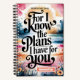 Un ilustracion sereno y espiritual del texto "Por que sé los planes que tengo para ti" en una caligrafía elegante y audaz. La frase está bellamente rodeada de acuarelas de color rosa, naranja y azul, que se mezclan armoniosamente. Un amanecer suave iluminará el fondo, proyectando un resplandor apacible sobre la escena.personalizado con nombre.