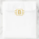 Este pegatina monogramado puede utilizarse para un sello para sobres, una etiqueta de regalo de un personalizado o para otras ocasiones. Este pegatina personalizado tiene una inicial dorada o amarilla oscura sobre un fondo blanco que está dentro de un cuadrado con una línea a través del medio. La parte inicial en el centro se puede personalizar fácilmente a una letra de su elección.