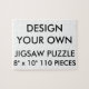 Personalizado imprimió una plantilla de PUZZLE Blank de 110 PIEZAS JIGSAW personalizada - 8" x 10" (110 piezas). Diseñar, crear, hacer el tuyo propio. Impresión a todo color de tu foto o diseño. Incluye una hermosa caja de regalo con imagen de rompecabezas también impresa en la tapa. Material de cartón robusto, montado en el portapapeles, superficie limpia y fácil de limpiar. Existen muchos rompecabezas de tamaño alternativo. Lo mejor para los regalos de cumpleaños o Navidades de niños o abuelos y para los fanáticos del rompecabezas. Atención: no apto para niños menores de 3 años.