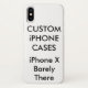 Personalizado imprimió una plantilla personalizada APENAS ALLÁ DE LA PLANTILLA DE FUNDA EN blanco. Diseñar, crear, hacer el tuyo propio. Tu foto, imagen, texto, logotipo, gráficos en una impresión de color de borde a borde con un acabado brillante. Diseñado para el iPhone X de Apple. El perfil delgado, delgado y elegante, ultradereche, permite un funda de la cubierta de plástico duro, duradero, ligero pero resistente al impacto, que no interfiere con la carga inalámbrica y da acceso a todos los puertos, controles y sensores. Engaste horizontal para evitar que la pantalla entre en contacto directo con otras superficies.