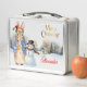 Pedro el conejo en su sombrero de santa con un Personalizar de nieve este diseño clásico y añadir un nombre