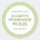 Estos pegatinas de enlatado personalizados son elegantes y prácticos. Fácil de personalizar con su nombre, y el tipo de tratamiento o preservación, y la fecha de creación de la comida. Esta etiqueta de enlatado de bonito tiene un borde de verde con puntos de polka blanco y texto verde.