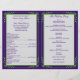 Este romántico programa de bodas florales moradas, limes, verdes, grises y blancas de 8.5"x11" tiene una cinta IMPRESA EN cinta y un arco con un par de joyas de diamante IMPRESIONADAS y purpurina FAUX y diamante impreso que se unen al broche de corazones, junto con los bordes enrollados ornamentales en las páginas de atrás e interior. También hay un verso que dice "Este día, me casé con mi mejor amiga. Para el que vivo, me río, sueña, ama". Está diseñado para plegarse por el centro. Asegúrese de que el texto está centrado en el lugar que desee, ya que todo se imprimirá como lo ve en su monitor. Todo el texto es personalizable.