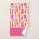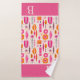 Toallas de personalizado coloridas en rosa y naranja con un patrón abstracto inspirado en la estética moderna de mediados de siglo. Líneas, puntos y formas geométricas; este diseño es sólo para usted si está en las creaciones estéticas y retro de mediados de siglo, además puede personalizar con su monograma o iniciales! Trae color a tu casa con esta hermosa toalla.