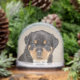 Fotografía de perro cachorro rottweiler negro personalizado y tipografía Globe de nieve. Texto, sólo en la parte delantera, listo para ser personalizado. ¡Ideal para todos!