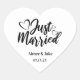 El pegatina se muestra en forma de corazón con una letra encantadora Just Married y se muestra con nombres de ejemplo y fecha. Personalizar este elemento y cambia el texto al suyo con esta plantilla. Imprimir con licencia