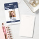 Una moderna placa minimalista personalizada de identificación de profesor con el logo de la escuela, foto y detalles. Personalice con su logotipo, foto y detalles para crear su propia y elegante placa blanca de negocios.