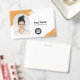Personalice fácilmente este Personalizado Horizontal Business Minimalista Empleado abstracto de pincel creativo Nombre Badge con foto, escanear código Qr o escanear código de barras y logotipo de negocios. Un sencillo diseño de negocio con foto redonda, en colores naranja y blanco, con forma de foto arco, personalizable completo en tamaño delantero y trasero, sans-serif, fuentes básicas y modernas y un aspecto profesional y claro. Disponible con patio, clip metalizado o retráctil. Sin orden mínima.