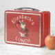 Una caja de almuerzo personalizada con un diseño de Apple Chibi en la parte delantera. Puedes personalizar el texto del nombre del propietario en la parte delantera.