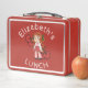 Una caja de almuerzo personalizada con un diseño de Cherry Chibi en la parte delantera. Puedes personalizar el texto del nombre del propietario en la parte delantera.