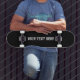 Patineta negra de moda con texto personalizable. También se puede utilizar como moderna decoración de arte en la pared de patinaje para niños, habitación para adolescentes o guardería infantil.