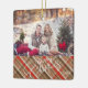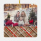 ¡Celebre estas vacaciones con un ornamento de encargo de la foto! La parte inferior tiene un golpeteo rojo, marrón, y blanco de la guinga con "Felices Navidad" en una escritura de lujo.