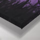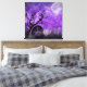 Noche mágica púrpura estrellada con silueta luna llena de árbol morado, piedra de cabeza, hierba y varias telarañas. Texto personalizar sobre la lápida.