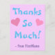 Características del este del de agradecimiento diseño personalizadas de la postal que el mensaje "agradece tanto!" en el frente, junto con un mensaje adaptable en la parte posterior. Podría ser utilizada para mostrar el aprecio alguien que ha hecho algo agradable.