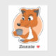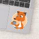 pegatina de vinilo cortado por personalizado con un ilustracion de zorro con una torta de cumpleaños; regalo lindo para los niños con zorro personalizado,