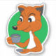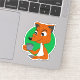 pegatina de vinilo cortado personalizado con un ilustracion de un zorro con una torta de cumpleaños, con círculo verde en el fondo; regalo lindo para los niños con zorro personalizado,