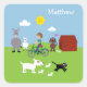 Pegatinas infantiles personalizados con animales personalizados (cabra, burro, mariposa, perros y cachorros persiguiendo a un gato) y un niño montando una bicicleta. Si necesitas ayuda para personalizar tu producto, ponte en contacto conmigo a través de mi tienda y estaré más que contento de ayudar.