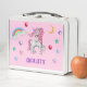 Este bonito diseño cuenta con un bonito unicornio, un arco iris, corazones y estrellas. Forma parte de un conjunto de accesorios a juego. El diseño se caracteriza por los colores del arcoiris, especialmente el rosa y el violeta. Puedes fácilmente personalizar y agregar el nombre de tu pequeña niña. Es parte de un conjunto de accesorios para hacer que tu regreso a la escuela sea fácil y fácil. Para cualquier necesidad de diseño especial, no dude en ponerse en contacto con el diseñador enviando un correo electrónico a choosehappystudio@yahoo.com