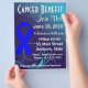 Personalice este volante del beneficio del cáncer de colon con sus propias palabras. ¿Tiene un próximo beneficio contra el cáncer, recaudación de fondos, caminata de concienciación, carrera o evento especial contra el cáncer? Los volantes son una forma perfecta de correr la voz sobre su causa. También presenta una cinta azul audaz para simbolizar la conciencia sobre el cáncer de colon. Cambie el texto, escriba sus propias palabras y cree un volante personalizado especial para su causa personal. Nota: El dorso del volante se deja intencionalmente en blanco para que nuestros clientes elijan su propia imagen, fotos, etc.