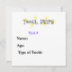 Aquí hay un divertido certificado dental para que te vayas bajo la almohada con el dinero. También es una gran adición para el libro de bebés de su hijo. Esto se puede personalizar de varias maneras. (1) Escriba el nombre del niño o elimine el texto si desea escribirlo usted mismo. (2) Lo mismo con la firma "T.Fairy". Puedes mantenerlo tal como está, o tipear en Hadas Dientes o la Sra. Fairy o lo que quieras. Si desea escribirlo a mano, simplemente elimine el texto del cuadro. Dejamos la ranura de $__ para escribirla a mano. AHORA LA ESPALDA..... También hemos agregado algo de información. para que lo publiques como un registro. Pero, todo depende de ti. Puede cambiar las categorías que tenemos si lo desea, o agregar algunas más. Hemos diseñado esto para que se ajuste al tamaño de 5"x5". Pero, tienes las opciones para probar otros tamaños. Si lo hace, asegúrese de volver a alinear el texto, etc. NOTA: ¡TAMBIÉN TENEMOS UN PILOTO DE LA JUSTICIA DE LA DOSIS!