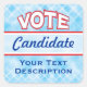 Personalizar este Pegatina de VOTO para satisfacer sus necesidades. Escriba su candidato para esta elección. Añadir su descripción como, por ejemplo, 2012 President. Después Anuncie su elección y póngalo con orgullo. ¡Y VOTEN!