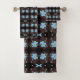 Las flores azules se pueden mezclar con cualquier color que elijas para estar a la altura de tu decoración. Toallas marrones de chocolate con un diseño floral azul.