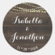 Un fondo rústico de madera oscura con luces de cuerda complementadas con una bella caligrafía.