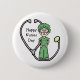 Tenemos una enfermera de sexo femenino en ropa quirúrgica verde en este botón. ¡En el fondo es un estetoscopio grande! El texto en esto se puede cambiar para tener un nombre, un hospital, o lo que usted desea. Esto cabe todos los botones del tamaño también.