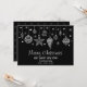 Share your festive joy with this black holiday card featuring white decorative baubles.