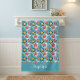 This nautical watercolor starfish bath towel design is complete with a seamless pattern of pink, yellow, and blue starfish as well as pretty blue background color and a place to add your name.