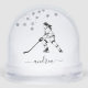 Celebrate winter fun with this custom ice hockey snow globe featuring a female hockey player illustration, falling snowflakes, and a personalized name in a soft calligraphy script. A perfect holiday keepsake or sports-themed gift for hockey girls, players, or coaches. Great for Christmas, team celebrations, or locker room surprises.