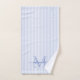 Add a touch of elegance to your bathroom with this personalized monogram bath towel set. Featuring a soft blue and white striped background, each towel is customized with your monogram initial and name in a fancy script font for a timeless, feminine look.