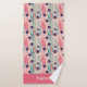 This nautical watercolor tropical fish bath towel design is complete with a seamless pattern of pink and navy blue angelfish as well as pretty pink background color and a place to add your name.