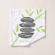 Personalized spa & wellness wash cloth design. Zen design with green bamboo leaves and stacked grey massage rocks.