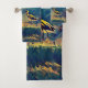 Foto original de un pájaro en un estanque, editada artísticamente con efectos de arte polaco. Lavabo, toallas de mano y toallas de baño disponibles en un set o en venta individual.