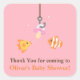 Un pegatina de agradecimiento humorístico que es genial para los favores de fiesta y las bolsas de regalo en la ducha de bebé con temática de pesca. Esta etiqueta de regalo viene con una línea de pesca que tiene un pacificador bebé en el anzuelo como cebo para los peces que incluye un pez payaso. Fácil de personalizar con tu propio mensaje de agradecimiento.